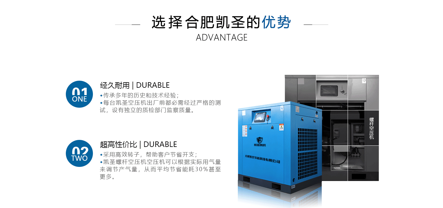 合肥凱圣節(jié)能科技有限公司是從事永磁變頻螺桿壓縮機(jī)系統(tǒng)的設(shè)計、制造、安裝、調(diào)試、維修與一體的公司。 在多年的螺桿空壓機(jī)研發(fā)與推廣歷程里,凱圣聚集和培養(yǎng)了大量壓縮機(jī)技術(shù)設(shè)計和管理人員,迅速發(fā)展成為集研究、生產(chǎn)、銷售、服務(wù)等環(huán)節(jié)為一體、嚴(yán)格按照標(biāo)準(zhǔn)執(zhí)行的企業(yè),公司成立開始,即以滿足客戶的實際需求為己任,大力開拓國內(nèi)外節(jié)能型空壓機(jī)市場,并始終保持創(chuàng)新精神,全力研發(fā)更為節(jié)能的螺桿式空壓機(jī),努力站在空壓機(jī)節(jié)能領(lǐng)域的排頭位置。 應(yīng)用范圍:公司產(chǎn)品廣泛應(yīng)用于機(jī)械、輕工、紡織、食品、石油、化工、冶金、礦山、電力、城建、醫(yī)學(xué)研究和科研等各行業(yè)中,將為節(jié)約能源做出巨大貢獻(xiàn)。公司秉承“信譽至上,...